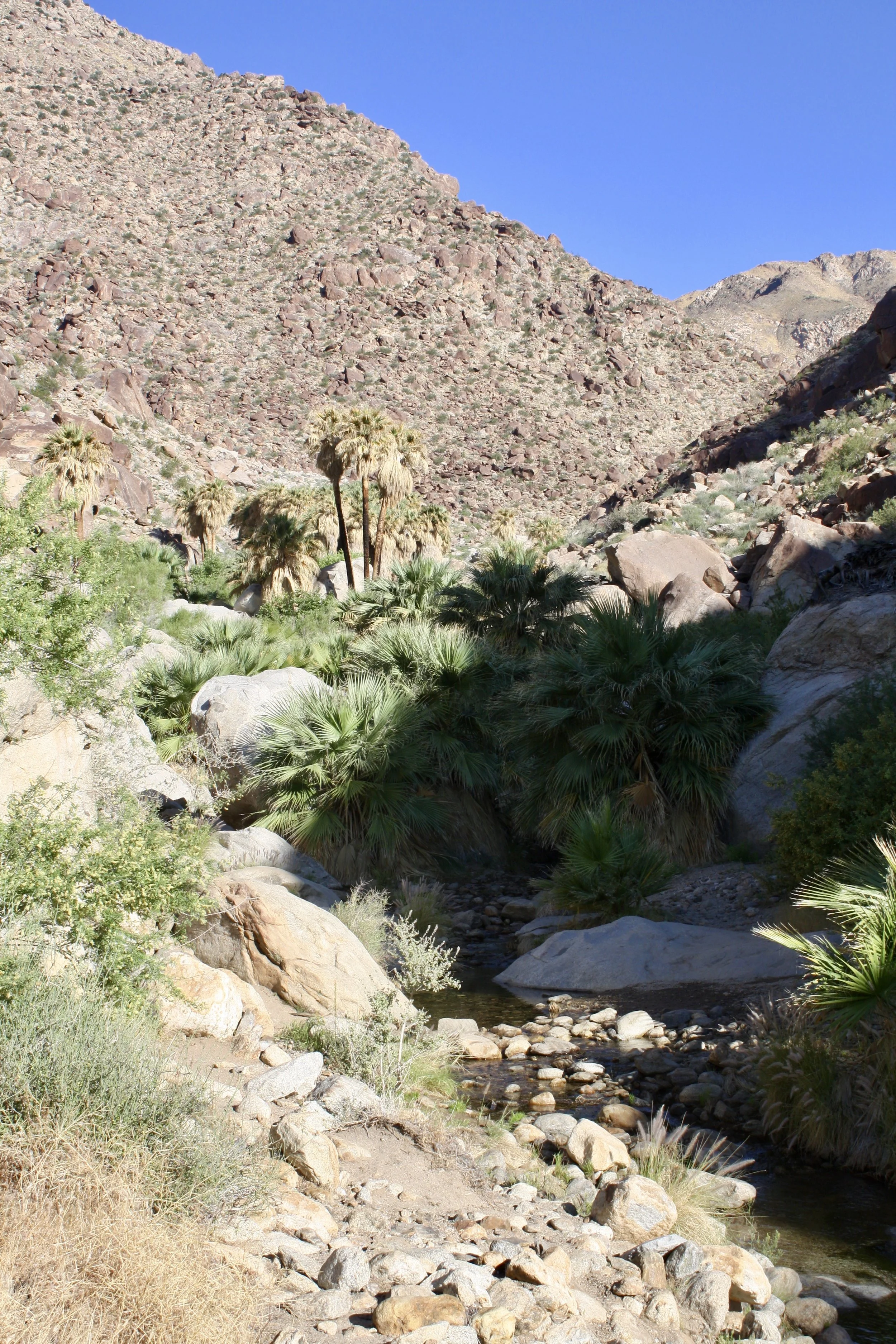 As soon as the sun came up we knew we had to move quickly to get in any exploring before it got too hot to exist again. I was feeling so good about myself for facing my fears the night before that I decided to keep the trend going and push myself once more. I think I really shocked Tommy when I told him that I wanted to do the Palm Canyon Trail. This was the exact hike that he mentioned the night before that I very quickly responded to him with a giant "NOPE". In my defense, this particular trail had signs warning for both rattlesnakes and mountain lions, and I'm just not okay with stumbling upon either of those. We hit the trail after packing up camp, and three miles later I was shown once again that facing my fears would be rewarded with the most incredible memories. Seriously, look at what was at the end of this hike....