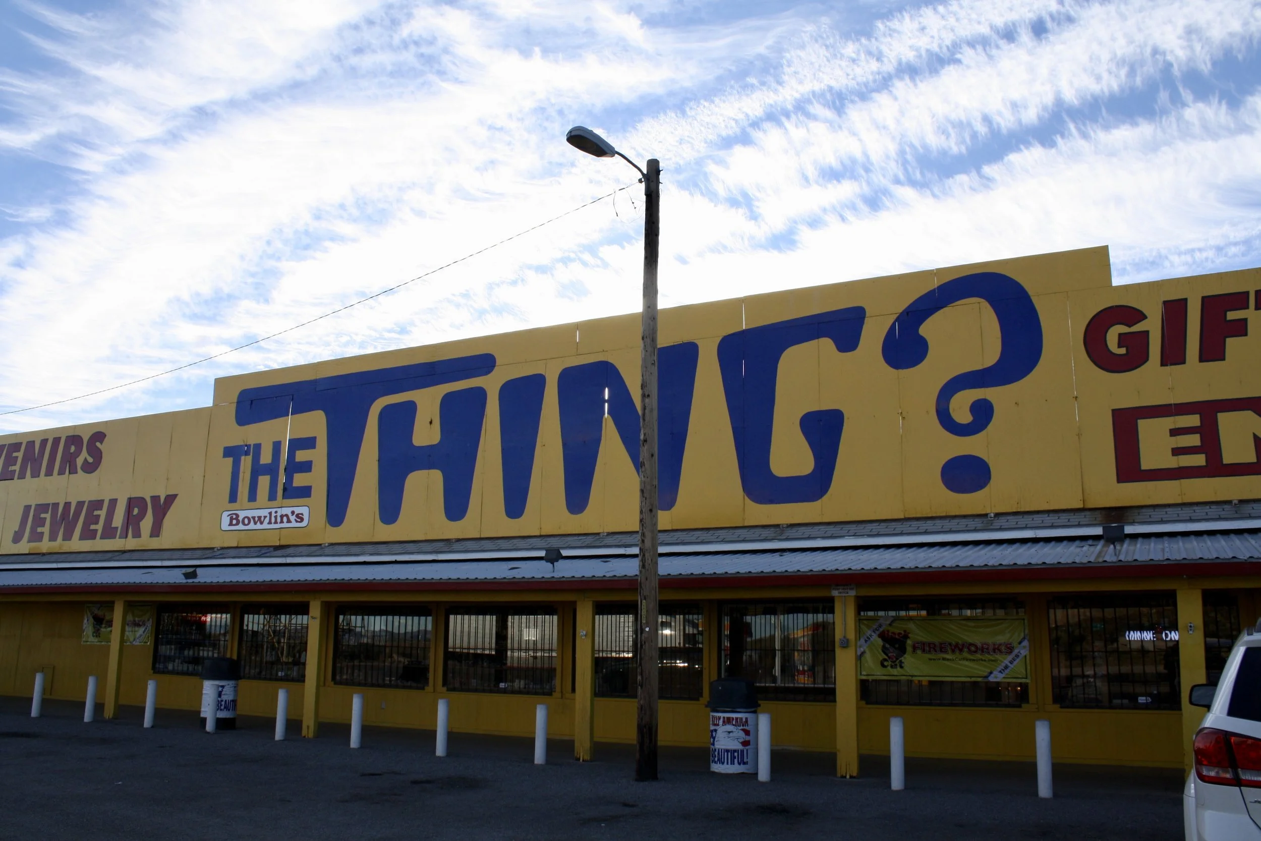 A new day brought with it a new destination...AND FOOD!! We packed up camp and hit the road with Saguaro National Park in our sights. We choked down another granola bar for breakfast with the promise of In-n-Out for lunch and coffee even sooner. When looking for gas and coffee options, I was pleasantly surprised when the best/closest option was located at "THE THING?". By now you should know that I tend to look forward to finding all things odd/quirky on the road, and I had been intrigued by the very vague "THE THING?" billboards for miles. I was half disappointed/half pleased when we followed the signs to reach this...